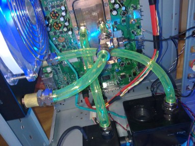 I have cut the tubing that connects the Rad to the water block up and inserted a temperature gauge in between. The temperature shall be displayed on a little monitor that fits in one of the CD/DVD drive bays. This kit is part of a Thermal take M9 set in which also comes a water level indicator. This is very useful as is the water level reaches below the minimum, then the system starts beeping until your either switch it off or you top up your water.
