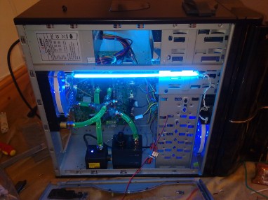 Firstly I bought this case from Ebay, I picked it up and paid for it. It was well worth the price and came with some extra fans and a neon Blue cathode which I decided to keep on. This mod has everything that I have taken out from all of my previous water cooling mods. It consists of the Thermaltake big water 745. The pump failed a few times whilst leak testing so I replaced it with a OCZ 500 lph which I bought from Ebay.