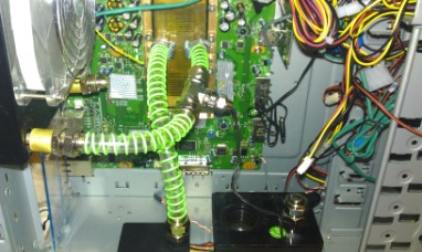 I have now inserted the Xbox 360 motherboard and the water block inside the case. I have also made screw holes and made spaces for the motherboard mounting screws to be fitted on. With projects like these there are two major problems, 1) Custom fitting and forcing things to fit and 2) the electrical Wiring, everything has to be bob on or else you may have to rip open the whole project up again and its happened more than once with this project!