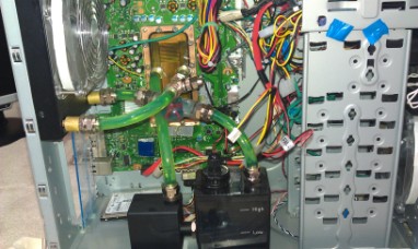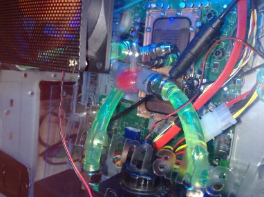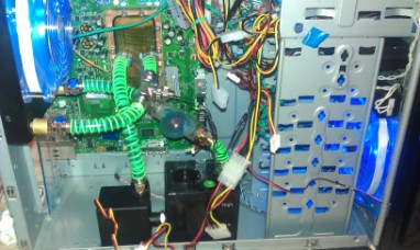 I have wired everything up, this is the most crucial part of the mod as if you have got one mistake then some part of the appliance may blow up and you will have to buy a new one. ( This did happen to me whilst I was messing about with the fan speed controller but Its all working ok now) You have got to review each step you take when installing wires because sometimes what happens is that the tangle up with each other and makes a mess. Anyway, I have left this on for about 1 - 2 hours to make sure every electrical appliance from the pump to the fans are working ok. I did not switch the pump on for long as its a water pump and will burn out if I switch it on for long.