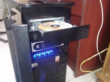 As you can see I here I have inserted the dvd drive. I have fitted the whole thing into a normal cd/dvd drive metal casing which allows me to insert this drive straight because the xbox drive is alot smaller than what the thermal take soprano case takes in. I had to modify the dvd drive alot to get it to fit in the pc case i.e cut legs off, break metal clips etc.. But it went inside at the end.