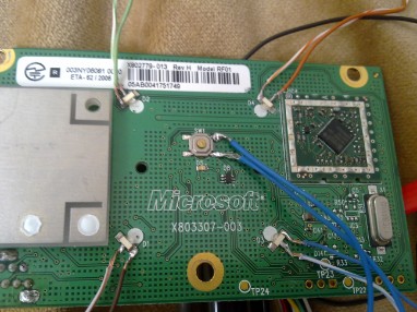 Talking about the electrical wiring, this is one of them. What I've had to do here is weld up wires to the LED's and power button on the RF module. The LED extension wires will be used to extend the LED's as it would be very hard to see the lights through the case therefore by extending and putting extra LED' s on the case to represent the players would be much easier. Also I have linked up the power button the power button on the case so you can use the case power button to power on/off the console which is ideal for this mod.